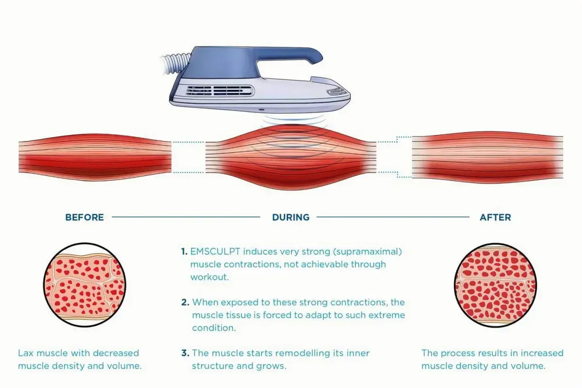 At the core of EMSZero lies High-Intensity Focused Electromagnetic (HIFEM) technology. This advanced system delivers electromagnetic energy deep into targeted muscle groups, stimulating powerful, involuntary contractions called supramaximal contractions.